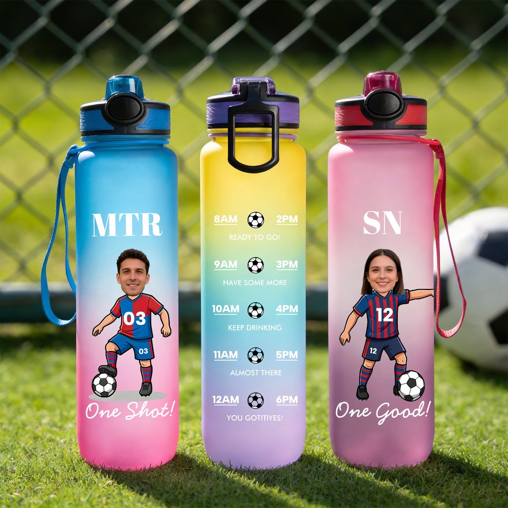 With a football theme, this bottle offers comprehensive personalization options, including avatars, player numbers, names, and slogans. The back features drinking time markings to remind you to stay hydrated. It's both stylish and practical, creating a unique and Personalised atmosphere.