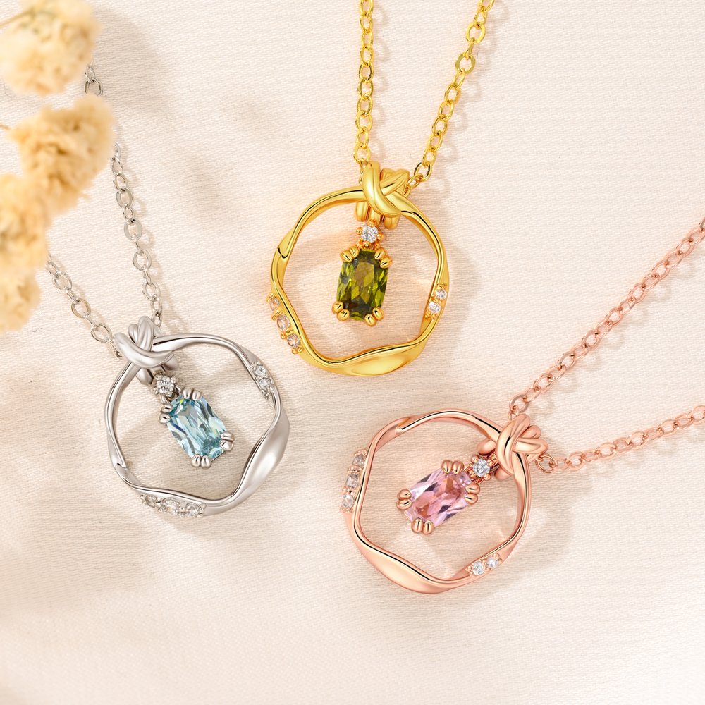 Personalised Mobius Strip Birthstone Necklace with Name Exquisite Jewellery Festival Mother's Day Birthday Gift for Mom Wife Girlfriend